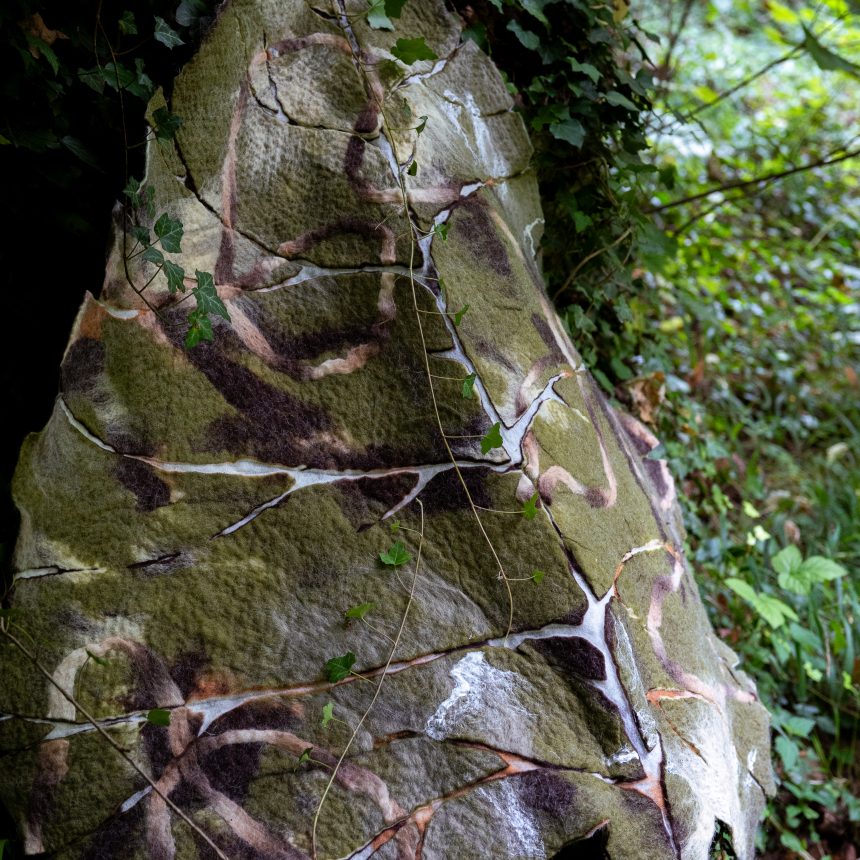Voor textielkunstenaar Mirjam Withaar is de link met natuur niet ver te zoeken. In haar atelier in Maastricht verwerkt zij wol tot organische wandobjecten van vilt.