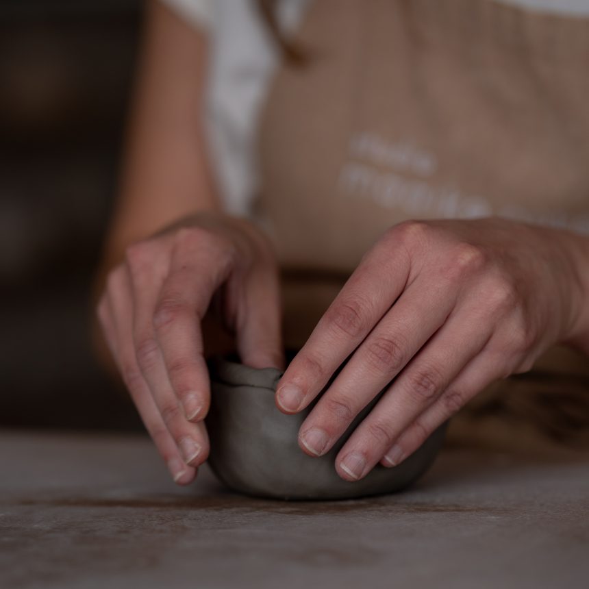 Handvormen is een ambachtelijke techniek waarbij je met je handen en enkele gereedschappen vormen opbouwt met klei. Het gaat niet om perfectie, maar om het proces en de unieke handgemaakte uitstraling.